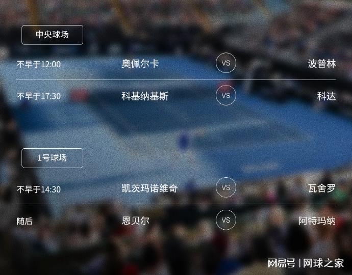澳洲人汤姆贾诺维奇以7-6(5)拿下首盘后,她的对手陶森因伤退赛。另一场对决,俄罗斯人卡林斯卡娅以6-0 6-3送蛋横扫鲁塞。亚历山德洛娃、巴多萨、布兹科娃、卡萨金娜、萨卡里等球员也将出战今天的单打首轮比赛。另外,中国老将张帅与捷克名将西尼亚科娃的组合将在双打首轮迎战比勒尔/乔恩特。祝张帅好运!